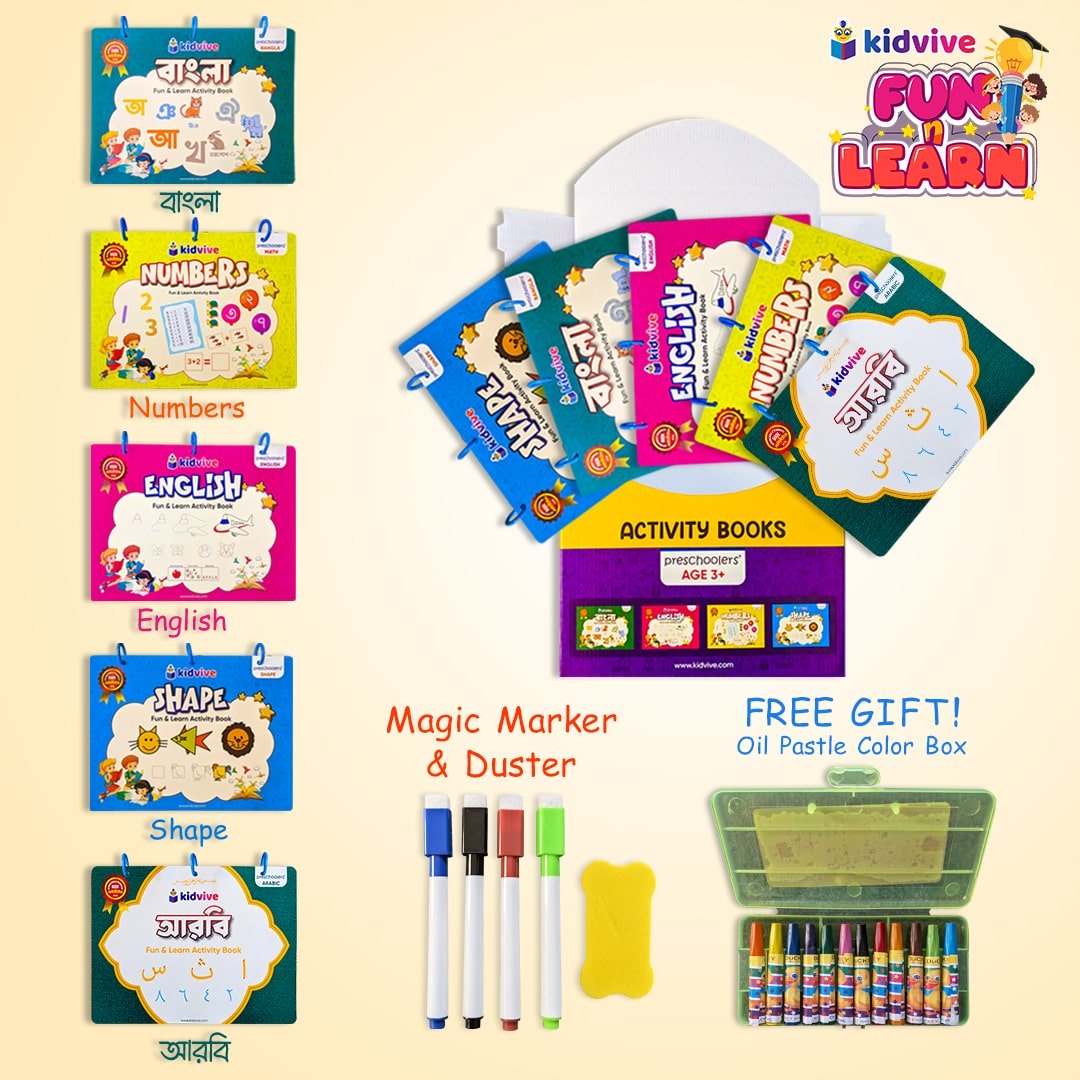 বাচ্চাদের শেখার জগতে নতুন এক অভিজ্ঞতা! Kidvive Fun & Learn Activity Book প্যাকেজ দিয়ে বাচ্চাদের হাতের লেখা শেখানোকে করে তুলুন এক আনন্দময় অভিজ্ঞতা!