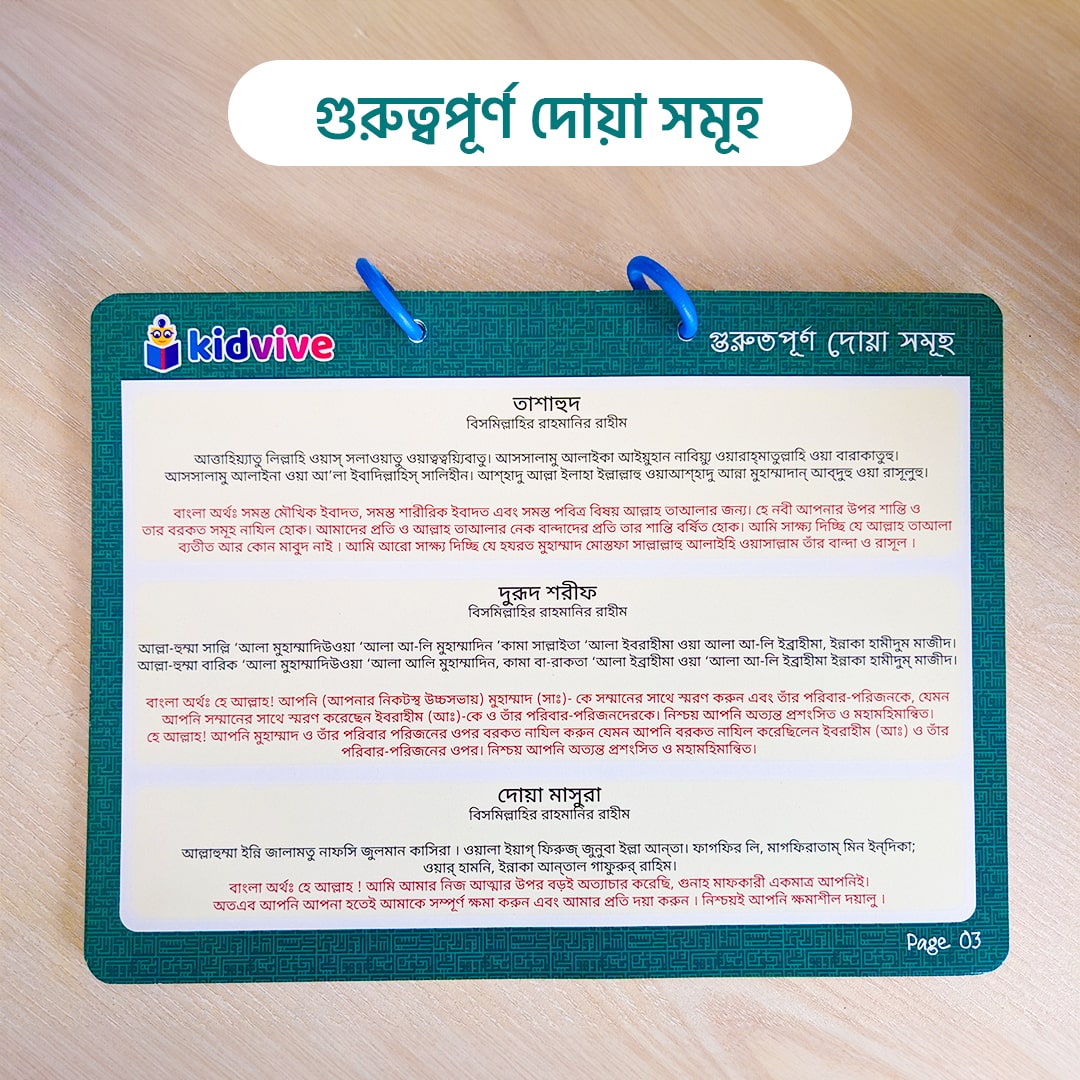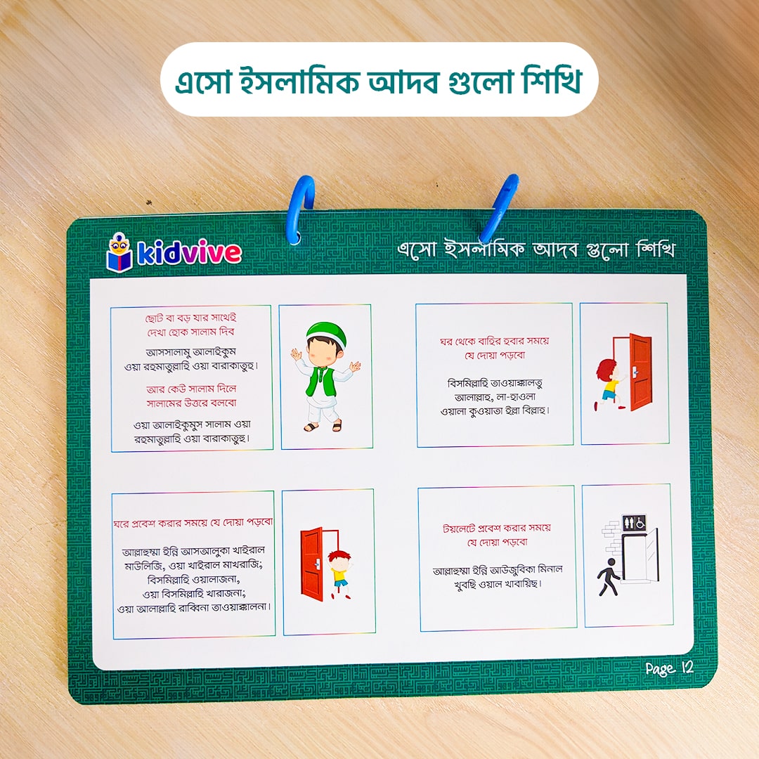 শিশুদের জন্য Islamic learning book এ দোয়া, সালাম, দৈনন্দিন আমল এবং সহজ ইসলামিক অভ্যাস শেখানো খুব গুরুত্বপূর্ণ কারণ এতে তারা ছোটবেলা থেকেই ইসলামিক আচরণ ও ভালো অভ্যাস গড়ে তুলতে পারে। ()