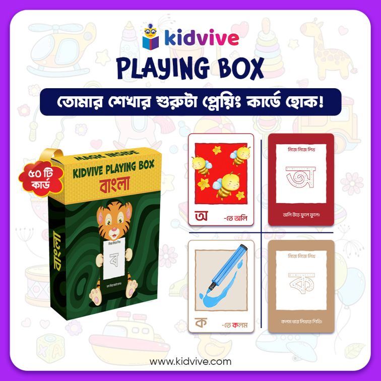 আজই আপনার সন্তানের জন্য Kidvive Playing Box অর্ডার করুন এবং শেখাকে করুন আরও মজার, colorful এবং interactive।